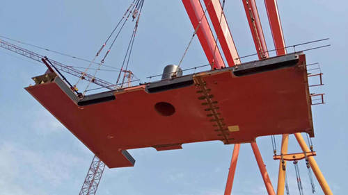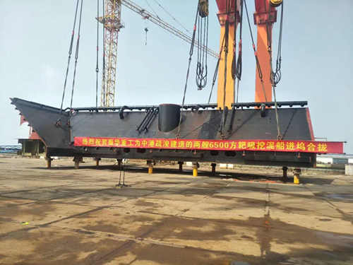 祝賀南通豪通船務(wù)有限公司(啟東事業(yè)部)在上海振華重工(啟東公司)承接整船搭載工程的6500方耙吸式挖泥船(ZP-1093),于4月3日上午10:18正式鋪底搭載!