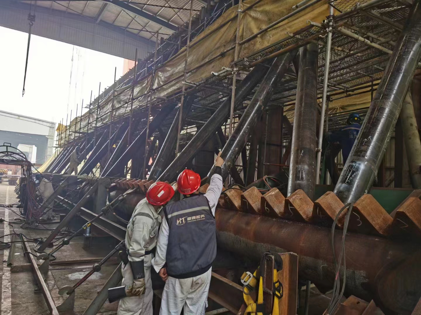 2023年4月30日,隨著招商重工273項目最后一節(jié)樁腿的成功摘鉤,標志著豪通船務承接的招商重工“1200噸風電安裝船”樁腿工程完美收關。自22年8月1日開始,豪通船務調集最優(yōu)秀的班組從齒條加工,單樁腿制作,樁腿合攏及最后的插樁對接,每一個環(huán)節(jié)都嚴絲合縫,無縫對接,所有作業(yè)人員爭分奪秒,夜以繼日,力爭在最短時間內保質保量完成項目并交付。
