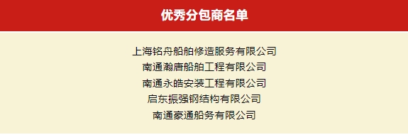 5月8日晚,振華啟東海工成立10周年職工歌詠比賽暨2024年“六比六創(chuàng)·三型一流杯”奪標(biāo)勞動競賽啟動儀式在公司行政樓廣場隆重舉行。活動中,公司對2023年度“優(yōu)秀分包商”“優(yōu)秀項目部”“優(yōu)秀團(tuán)隊”“優(yōu)秀干部”“優(yōu)秀員工”進(jìn)行表彰。 南通豪通船務(wù)有限公司榮獲2023年度“優(yōu)秀分包商”稱號。